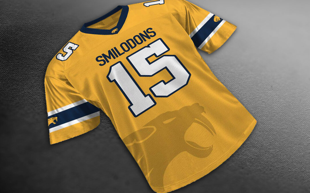 Camiseta Smilodons Diseño gráfico Cliente: CDE Smilodons Año: 2014 Descripción: Diseño de camiseta de juego para el equipo de Flag Football del CDE Smilodons.